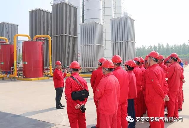 4月28日,安泰燃?xì)夤驹谔┥讲@w副總經(jīng)理、安泰燃?xì)舛麻L(zhǎng)趙恒剛的帶領(lǐng)下,組織公司全體黨員、班組長(zhǎng)以上管理人員和部分團(tuán)員到泰山玻纖滿荘新區(qū)參觀學(xué)習(xí)。