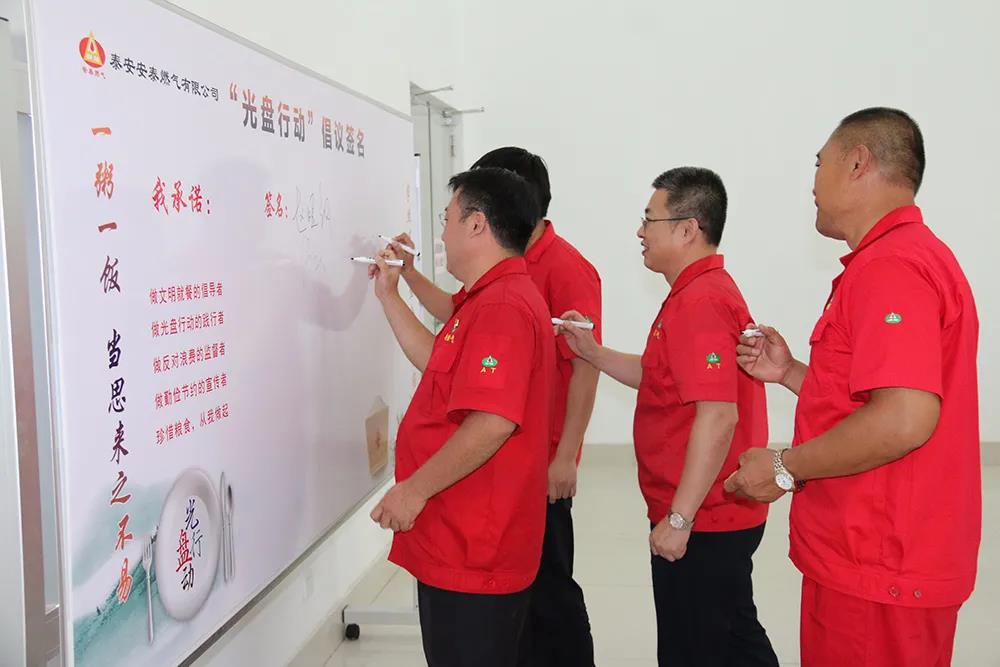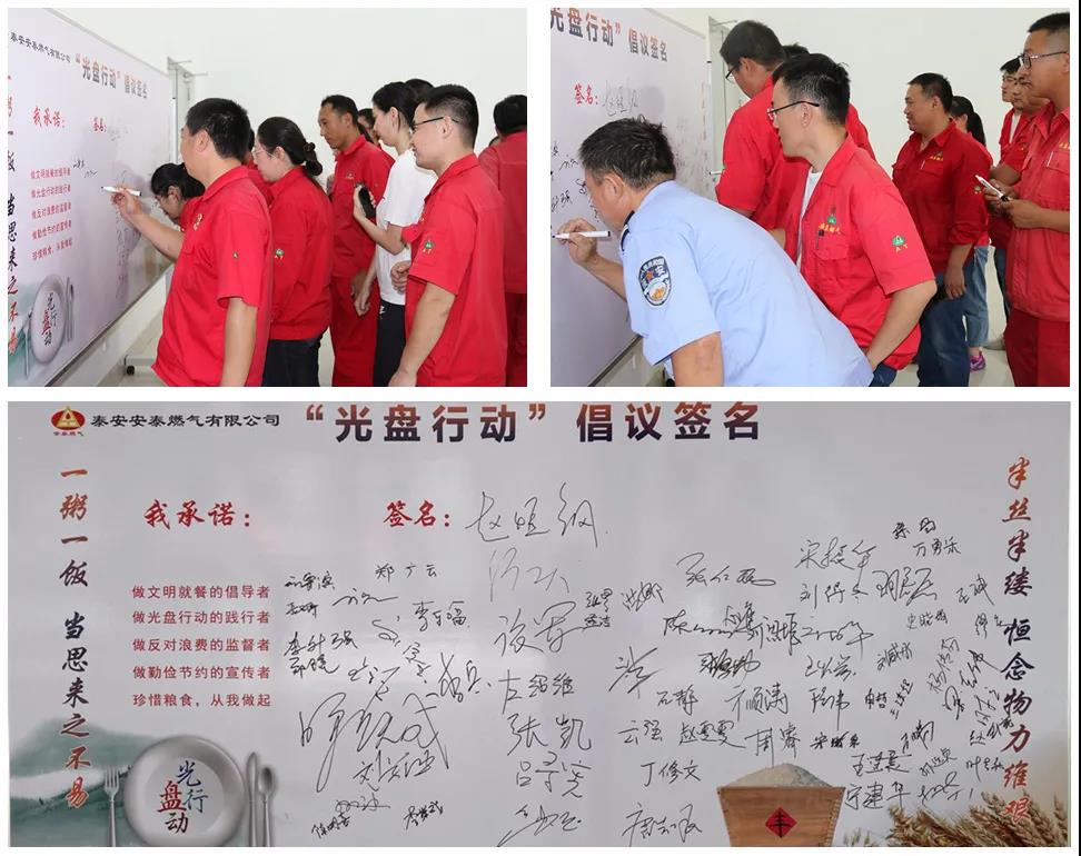 為深入貫徹落實(shí)習(xí)近平總書記關(guān)于制止餐飲浪費(fèi)行為的重要指示,大力弘揚(yáng)中華民族勤儉節(jié)約的優(yōu)良傳統(tǒng),9月25日,安泰燃?xì)庠诠静蛷d組織開(kāi)展“光盤行動(dòng)”倡議簽名活動(dòng),公司70余名干部職工參與活動(dòng)。