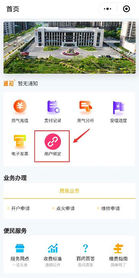 ? 全部綁定完成后,點(diǎn)擊首頁(yè)的“用戶(hù)綁定”可查看并切換當(dāng)前登錄的燃?xì)赓~戶(hù)。